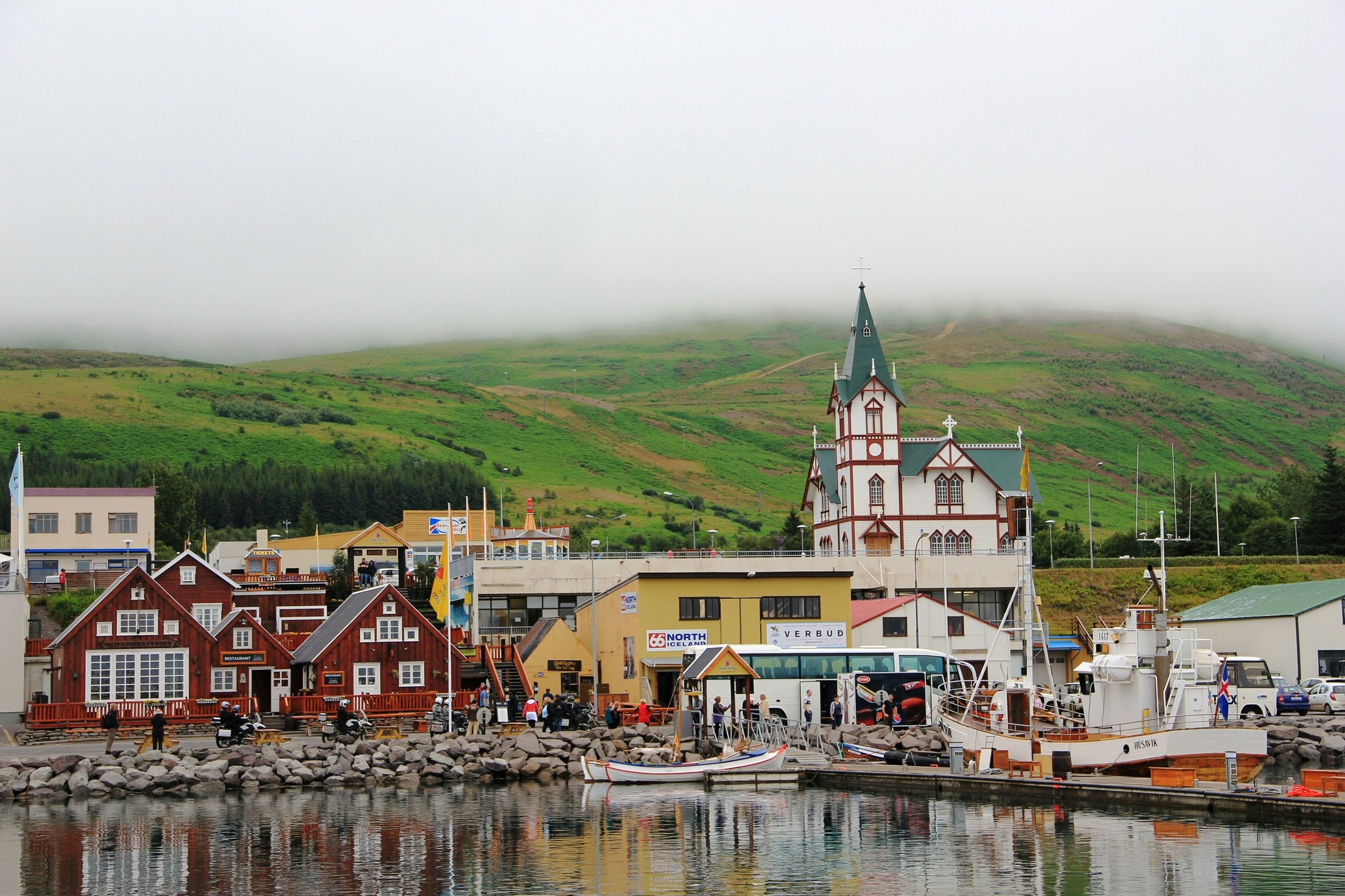 Pero Húsavík no es solo ballenas. La ciudad es encantadora, con casas preciosas y una atmósfera muy relajada. El edificio más representativo es Húsavíkurkirkja, una iglesia de madera construida en 1907. La ciudad es un gran destino para disfrutar de la cocina tradicional islandesa y el marisco es muy fresco.