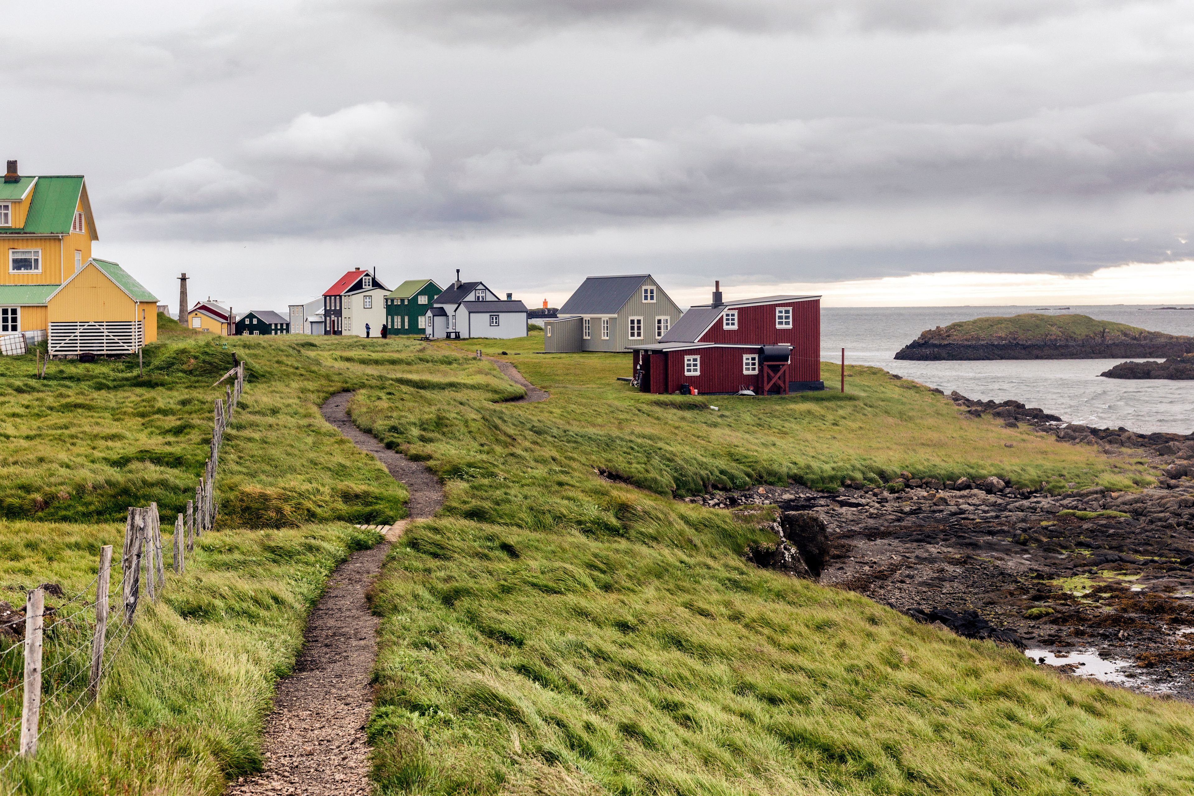 El terreno llano de la isla es perfecto para dar paseos agradables. El centro de la isla es una pradera y se disfruta de unas estupendas vistas de la bahía de Breiðafjörður desde los acantilados. Puedes caminar por el pueblo, explorar las tranquilas playas o dar un paseo hasta los distintos miradores naturales que hay en la isla para ver la bahía y las islas de alrededor. Como Flatey es tan pequeña la puedes recorrer entera en apenas un par de horas.