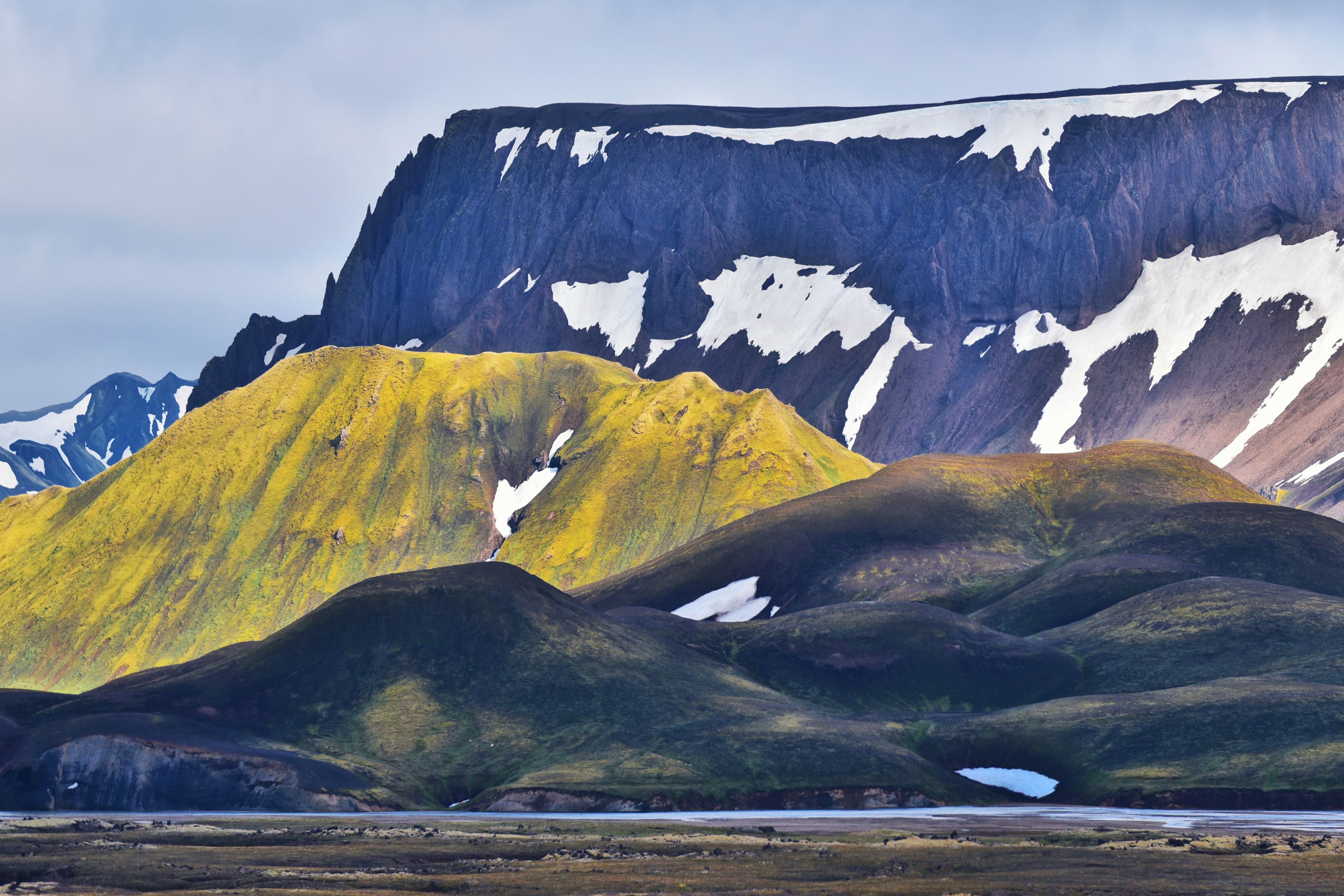 Named after the Nordic god Thor, Þórsmörk is a green valley surrounded by glaciers and mountains. It’s a rare lush environment within the stark Highland landscape. The area has several hiking trails, designated camping areas, and a variety of plant and animal life adapted to its peculiar conditions.