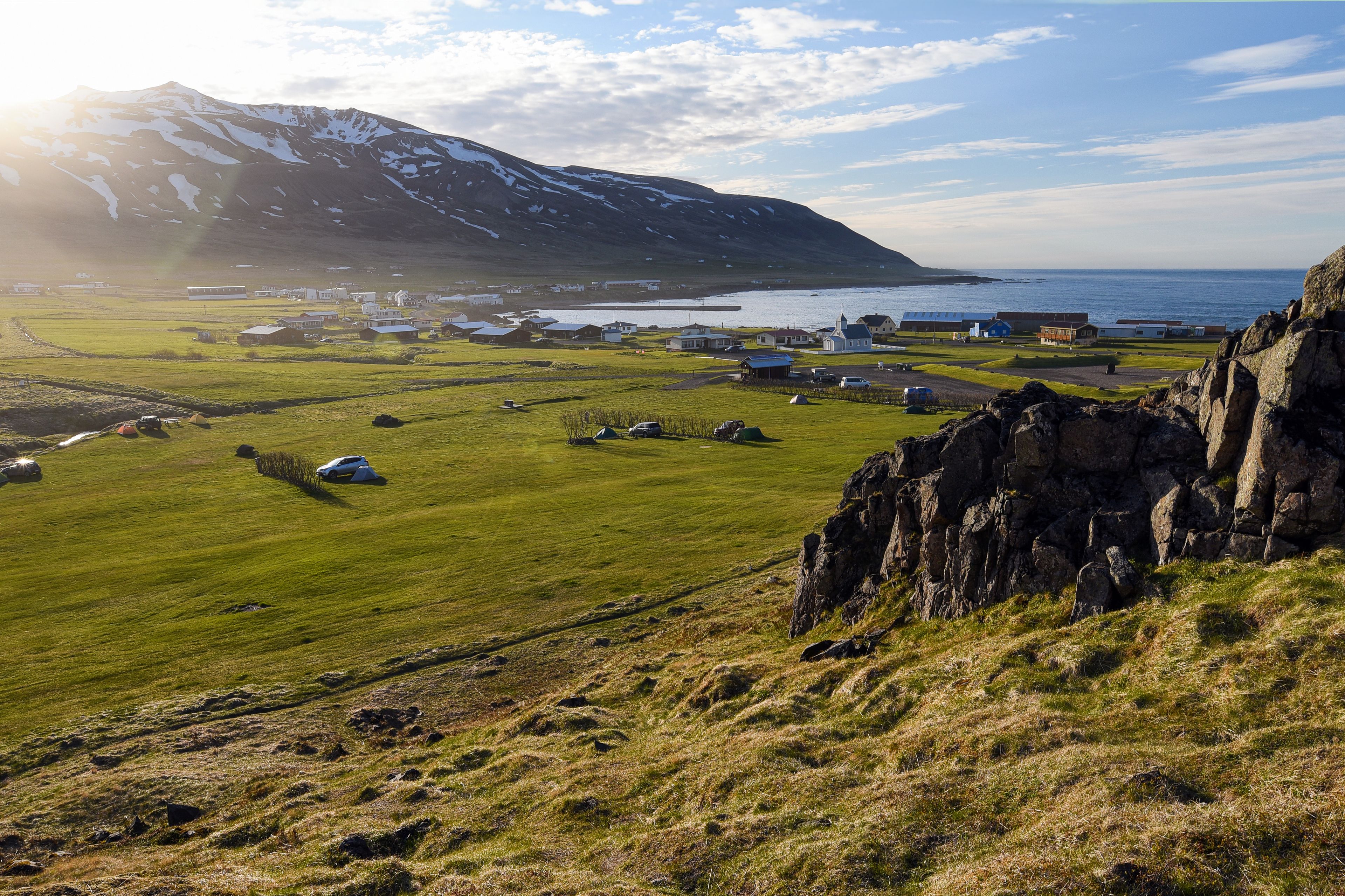 The region's rugged coastline is dotted with charming fishing villages, many of them worth a visit. The area of Borgarfjörður, with its hiking trails, lava fields, and scenic fjords, is highly recommended.