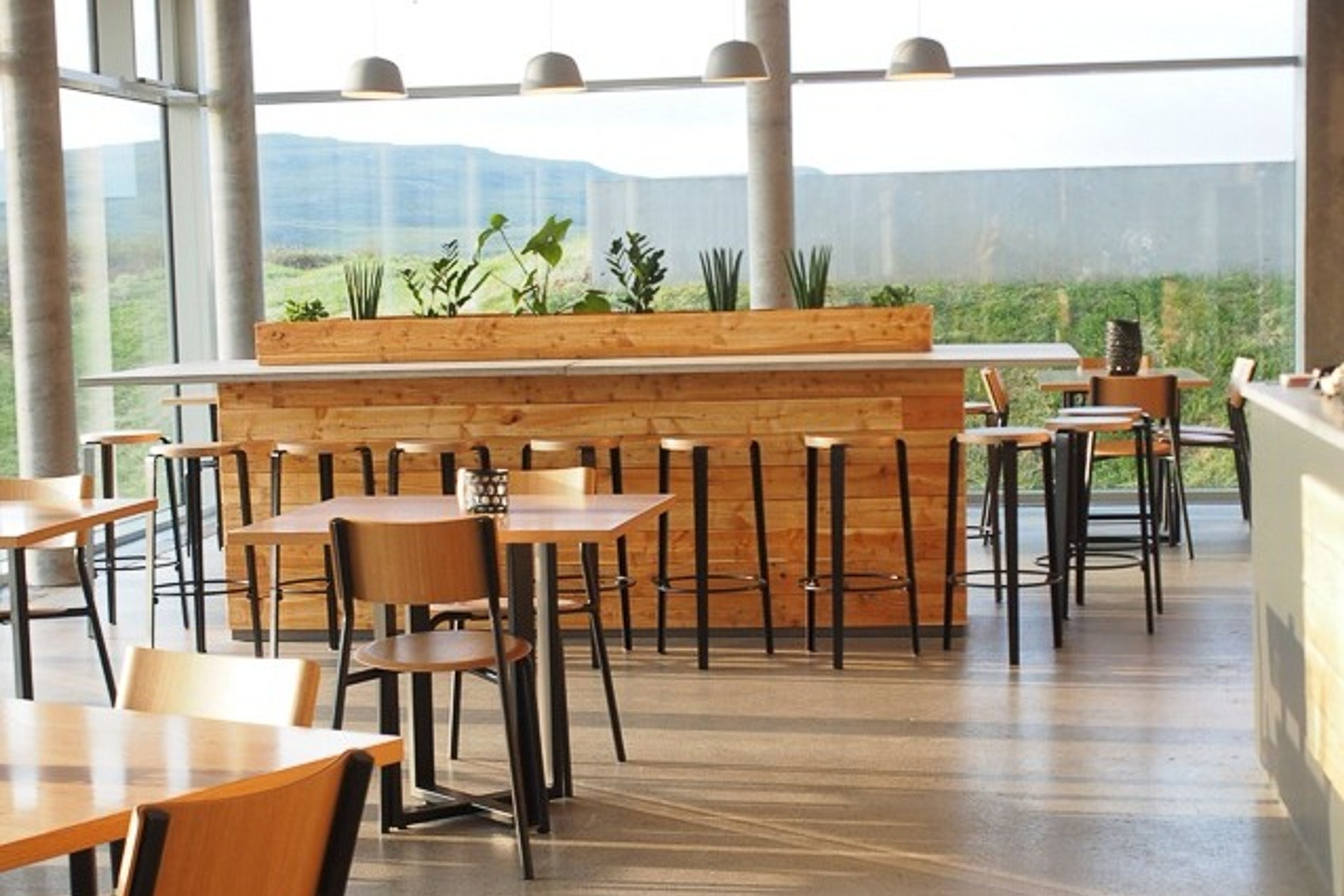 At Vök Baths, you'll find Iceland's only floating hot pools, a sauna, cold water tunnels, and a tea bar where they serve herbal teas made with hot spring water. There's also the Vök Bistro, where you can try local dishes like Arctic char.