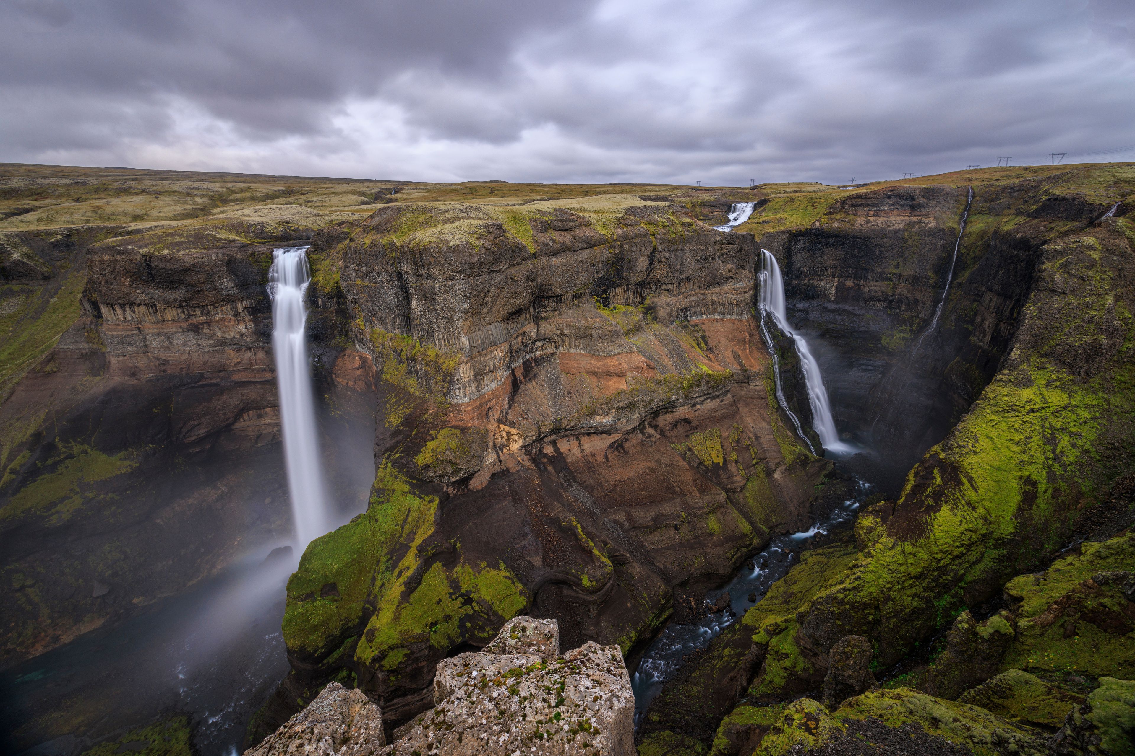 Haifoss is one of Iceland's tallest waterfalls, standing at 122 meters (400 feet). The name "Haifoss" means "High Waterfall," and it's easy to see why. The breathtaking drop of water is a magnet for nature lovers and photographers. Plus, right next to Haifoss is another waterfall called Granni, which means "Neighbor." Seeing these two waterfalls together is an amazing sight.