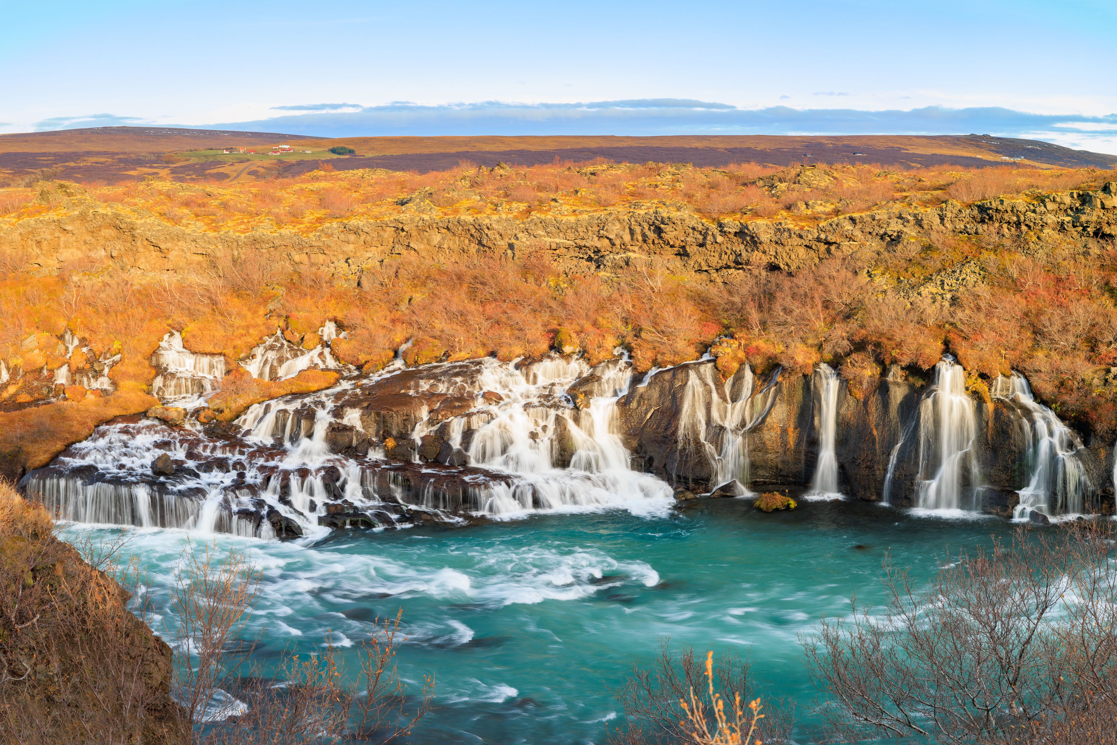 Hraunfossar has been formed over thousands of years, starting from a single lava flow from the Hallmundarhraun lava field. This lava field was created by volcanic eruptions in the Langjökull glacier area around 800 AD. Over time, the lava hardened and allowed water to seep through, creating the beautiful waterfalls we see today.