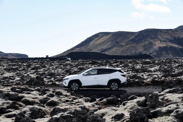 Hyundai Tucson er fjölhæfur og áreiðanlegur með frábæru fjórhjóladrifi, sem gerir hann að hinu fullkomna vali fyrir íslenska ferðalagið.
